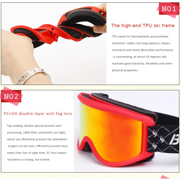 Durable Womens Ski Goggles Anti Scratch Shock Absorption Performance TPU Frame Images |
